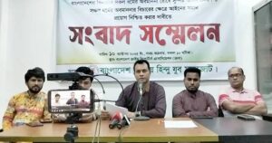 শুক্রবার (১০ অক্টোবর) রাজধানীর সেগুনবাগিচায় অবস্থিত বাংলাদেশ ক্রাইম রিপোর্টার্স অ্যাসোসিয়েশনে (ক্র্যাব) বাংলাদেশ জাতীয় হিন্দু যুব মহাজোট আয়োজিত বাংলাদেশের বিদ্যমান সব ধর্মের অবমাননা রোধে সুস্পষ্ট আইন প্রণয়ন ও সব ধর্মের অবমাননার বিচারের ক্ষেত্রে আইনের সমান প্রয়োগ নিশ্চিত করার দাবিতে এক সংবাদ সম্মেলনে এসব দাবি জানানো হয়।