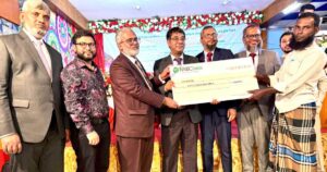 বৃহস্পতিবার (৩০ অক্টোবর) ভোলার একটি হোটেলে বাংলাদেশ ব্যাংকের পুনঅর্থায়ন কর্মসূচির আওতায় প্রান্তিক পর্যায়ের মানুষের আর্থিক অন্তর্ভূক্তি নিয়ে মতবিনিময় ও প্রকাশ্যে ঋণ বিতরণ অনুষ্ঠানে প্রধান অতিথি হিসেবে চেক হস্তান্তর করেন বাংলাদেশ ব্যাংকের নির্বাহী পরিচালক রূপ রতন পাইন।