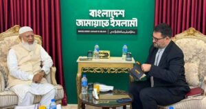 জামায়াত আমিরের সঙ্গে ছিলেন বিশিষ্ট অর্থনীতিবিদ ড. মিজানুর রহমান ও সাবেক সিনিয়র সচিব মুহাম্মাদ সফিউল্লাহ এবং জামায়াত আমিরের পররাষ্ট্রবিষয়ক উপদেষ্টা প্রফেসর ড. মাহমুদুল হাসান।