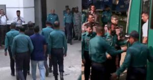 রোববার (২৩ নভেম্বর) সকাল ১০টার দিকে কড়া নিরাপত্তায় প্রিজনভ্যানে করে তাদের ট্রাইব্যুনালে আনে পুলিশ। এরপর প্রিজনভ্যান থেকে নামিয়ে একে একে সেনা কর্মকর্তাদের হাজতখানায় নেওয়া হয়।