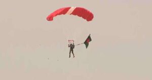 মঙ্গলবার (১৬ ডিসেম্বর) দুপুর ১২টার পর জাতীয় পতাকা হাতে নিয়ে আকাশ থেকে ঝাঁপ দিয়ে এই ইতিহাস গড়েন তারা। এটি বিশ্বের বুকে সর্বাধিক পতাকা হাতে প্যারাস্যুটিং করার রেকর্ড।