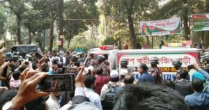 বিপ্লবী শহিদ ওসমান হাদির জানাজার নামাজে অংশ নিতে জাতীয় সংসদ সংলগ্ন মানিক মিয়া অ্যাভিনিউতে জড়ো হচ্ছেন নানা শ্রেণি-পেশার মানুষ। একের পর এক মিছিল নিয়ে জানাজার স্থানে প্রবেশ করছেন ছাত্র-জনতা।