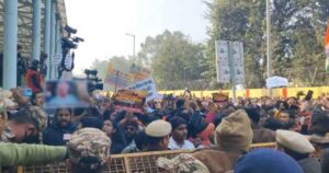বিক্ষুব্ধরা ব্যারিকেড ভেঙে পুলিশের সঙ্গে সংঘর্ষে জড়ায় এবং ‘বাংলাদেশ মুর্দাবাদ’ স্লোগান দিতে দিতে কুশপুত্তলিকা পোড়ায়। তবে বিক্ষোভকারীদের হাইকমিশন ভবন থেকে ৫০০ মিটার দূরে আটকে দেওয়া হয়েছে। ঘটনাস্থলে ভারতীয় নিরাপত্তা বাহিনী কয়েক স্তরের ব্যারিকেড, পুলিশ ও আধাসামরিক বাহিনী কঠোর অবস্থানে রয়েছে।