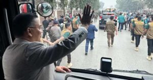 হযরত শাহজালাল আন্তর্জাতিক বিমানবন্দর থেকে লাল-সবুজ বাসে করে ৩০০ ফিট এলাকার গণসংবর্ধনা মঞ্চের উদ্দেশ্যে আসছেন বিএনপির ভারপ্রাপ্ত চেয়ারম্যান তারেক রহমান। আসার পথে বাসের সামনে ও পাশে দাঁড়িয়ে দলীয় নেতাকর্মীদের হাত নেড়ে শুভেচ্ছা জানাচ্ছেন তিনি।