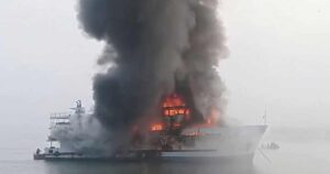 কক্সবাজারের নুনিয়াছড়া বিআইডব্লিউটিএ ঘাট সংলগ্ন বাঁকখালী নদীতে সেন্ট মার্টিনগামী জাহাজে আগুন লেগেছে। জাহাজটির নাম ‘দ্যা আটলান্টিক ক্রুজ’।