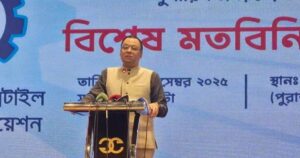 রবিবার (২৮ ডিসেম্বর) রাজধানীর গুলশান ক্লাবে বিটিএমএ আয়োজিত এক মতবিনিময় সভায় শওকত আজিজ রাসেল এসব কথা বলেন। সুতা উৎপাদন খাতে দীর্ঘদিন যাবত বিদ্যমান বহুবিধ সমস্যা ও তা থেকে উত্তরণে সরকারের করণীয় সম্পর্কে সুপারিশ প্রণয়নের জন্য এ সভা হয়। এতে আরও বক্তব্য দেন বিটিএমএর সাবেক সভাপতি এ মতিন চৌধুরী ও মোহাম্মদ আলী খোকন, সাবেক পরিচালক রাজীব হায়দার প্রমুখ।