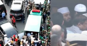 জানাজা শেষে খালেদা জিয়ার কফিন কাঁধে তুলে নিতে দেখা যায় জনপ্রিয় ইসলামি বক্তা ড. মিজানুর রহমান আজহারিকে।