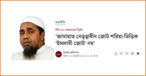 হেফাজতে ইসলাম বাংলাদেশের আমির আল্লামা শাহ মুহিব্বুল্লাহ বাবুনগরীসহ ১০১ জন বিশিষ্ট আলেমের এক বিবৃতির ভিত্তিতে ‘জামায়াত নেতৃত্বাধীন জোট কোনো ইসলামি জোট নয়’ শীর্ষক একটি খবর মূলধারার একাধিক সংবাদমাধ্যমে প্রকাশিত হয়েছে। এসব সংবাদ প্রতিবেদন থেকে জানা গেছে, বৃহস্পতিবার (১ জানুয়ারি) ‘দাওয়াতুল ইহসান বাংলাদেশ’ নামক একটি সংগঠনের প্যাডে প্রচার সম্পাদক মাহদী হাসান বিবৃতিটি পাঠিয়েছেন।