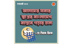 ফটোকার্ডে লেখা রয়েছে, ‘আমাদের সবার স্বপ্নের বাংলাদেশ বাস্তবে গড়ার জন্য হ্যাঁ-তে সিল দিন।’