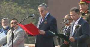 মঙ্গলবার (ফেব্রুয়ারি) বিকেলে জাতীয় সংসদ ভবনের দক্ষিণ প্লাজায় রাষ্ট্রপতি মো. সাহাবুদ্দিন নতুন প্রধানমন্ত্রীর শপথবাক্য পাঠ করান। শপথ অনুষ্ঠান সঞ্চালনা করেন মন্ত্রিপরিষদ সচিব নাসিমুল গনি।