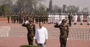 বুধবার বেলা ১১টায় প্রথমে প্রধানমন্ত্রী শ্রদ্ধা নিবেদন করেন। এরপরে তিনি মন্ত্রিপরিষদের সদস্যদের নিয়ে বীর শহীদদের প্রতি শ্রদ্ধা জানান।