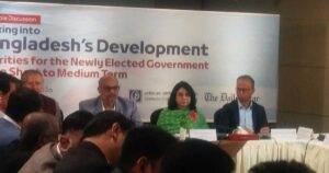 বুধবার (৪ মার্চ) ‘বাংলাদেশের উন্নয়নের দিকে নজর: স্বল্প থেকে মধ্যমেয়াদে নবনির্বাচিত সরকারের অগ্রাধিকার’ শীর্ষক গোলটেবিল আলোচনায় সিপিডির নির্বাহী পরিচালক ড. ফাহমিদা খাতুন এসব তথ্য তুলে ধরেন।
